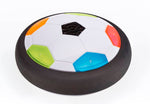 The soccer disk hovers and glides on a cushion of air, even over low-pile carpet, wood floors or pavements. The five built-in black-light LEDs create a cool ultra glow light show in any darkened room or area. The disc has a protective bumper for safe bouncing off walls and furniture.
