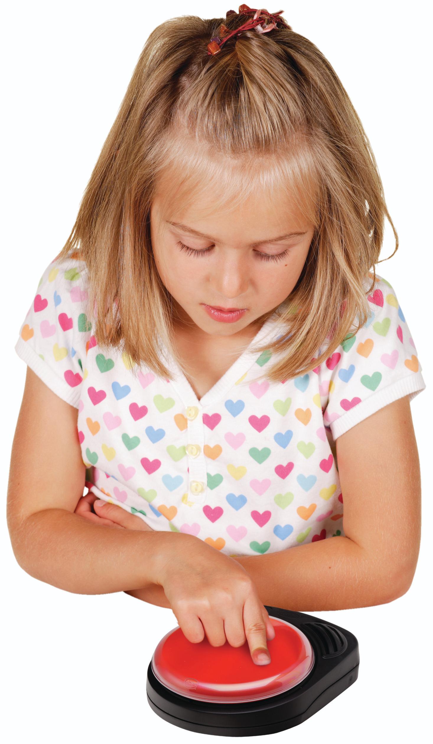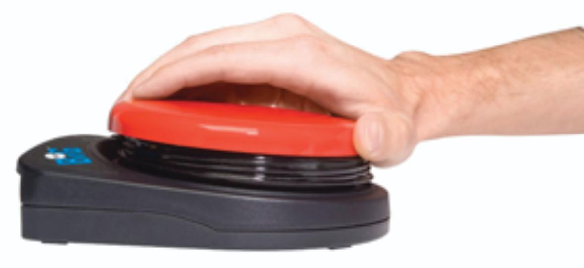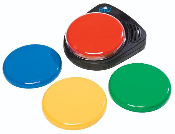 A communication aid with 20 seconds of memory which allows a message to be recorded and played back when pressed.