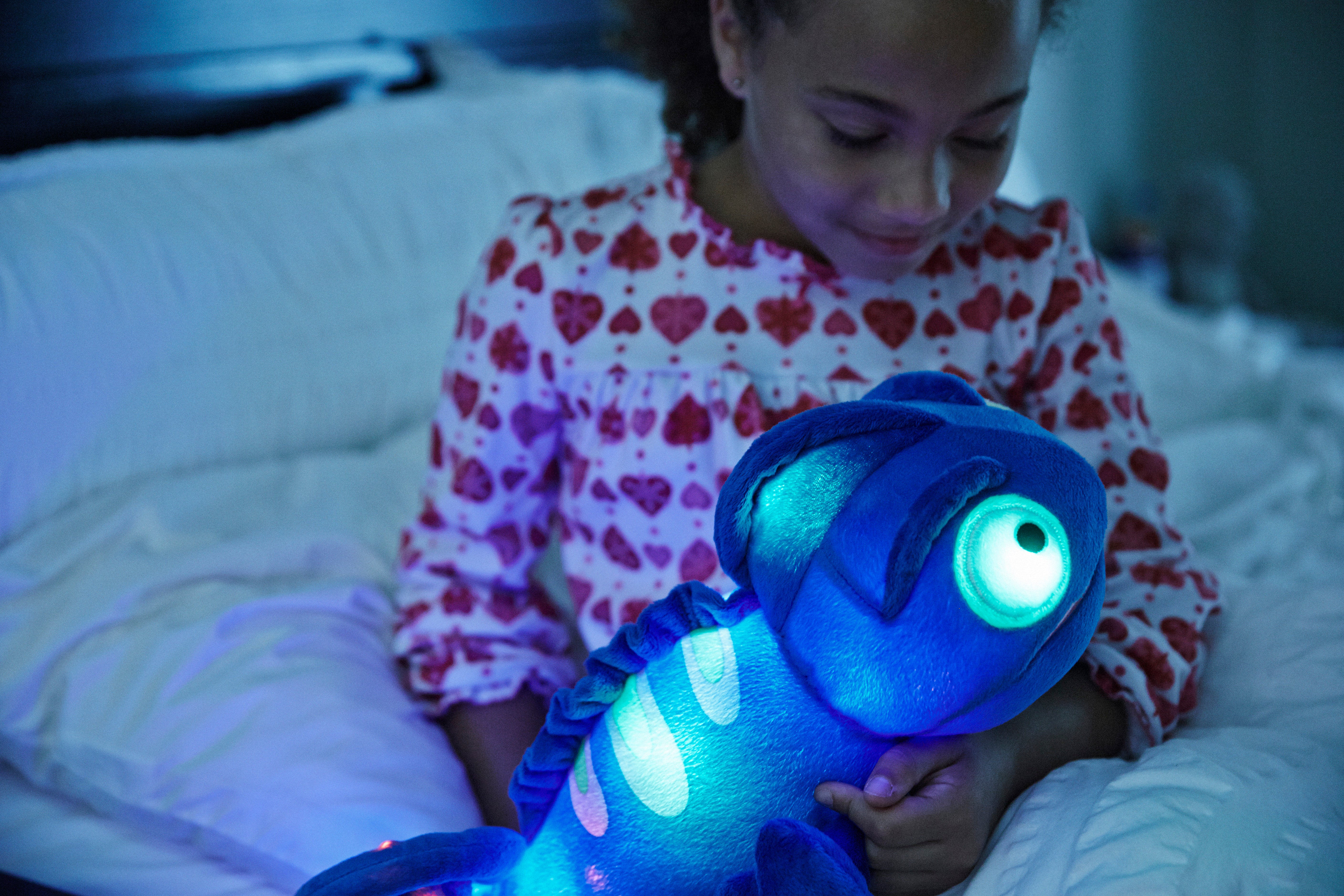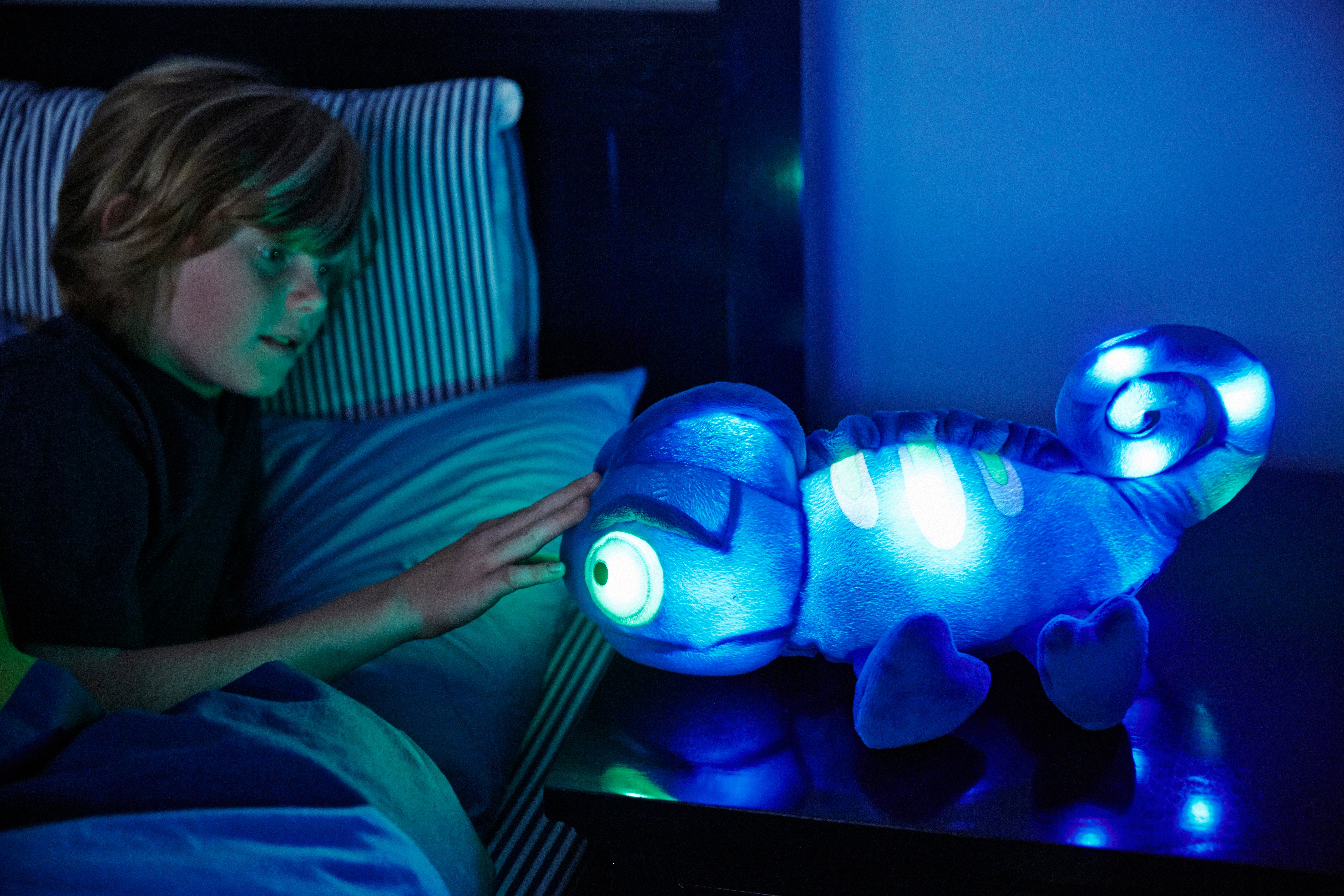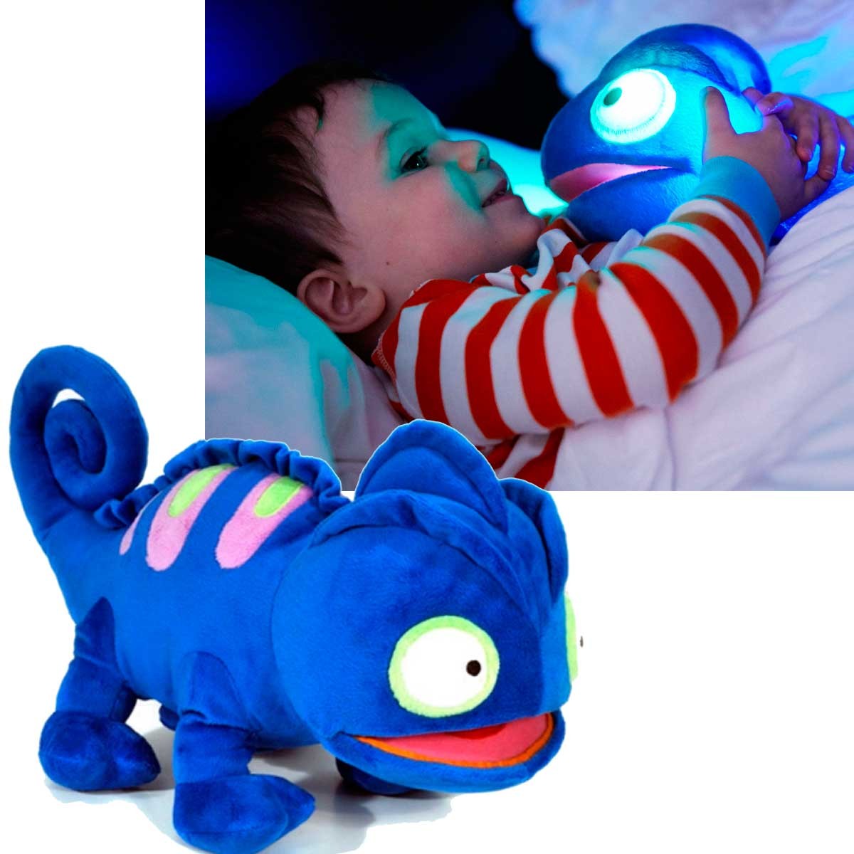 Charley the chameleon is a cuddly plush friend that helps children's imaginations light up as Charley illuminates in a rainbow of colours and plays soothing sounds of either the rainforest or tropical tunes. Comes with a 45 minute sleep timer. Requires: 3 x AAA batteries (included). Ages: 0+. Size: 300mm long x 210mm high.