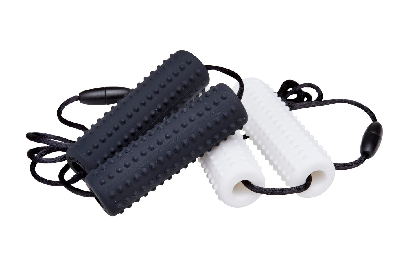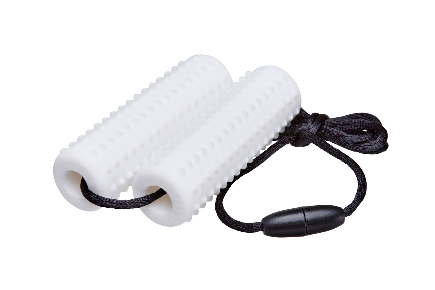 The cactus chubes are a versatile sensory chew that can be worn as a bangle, bracelet, pendant, necklace. the design is discreet, allowing users to satisfy their sensory needs without drawing attention. The spiked surface of the chubes offers a different oral sensation to many chewies. Available in Black or White. Supplied with a breakaway cord.