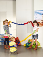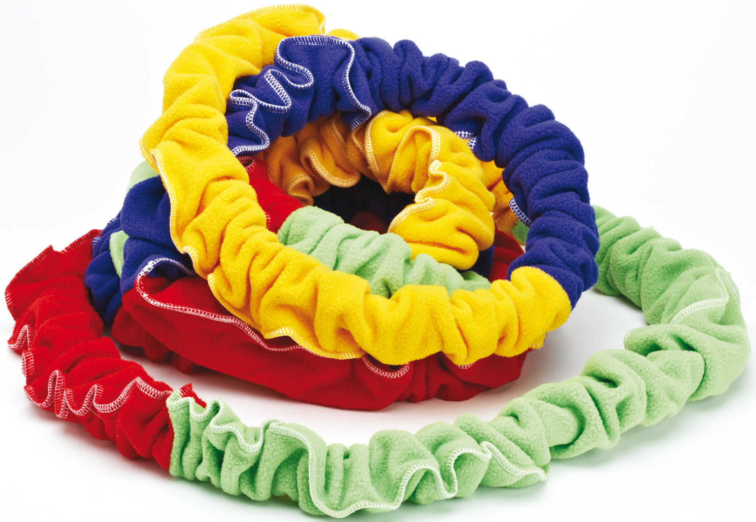 A flexible, heavy duty, top-grade latex tube encased within a soft fabric cover. Stand or sit within the band and pull or push outward. Co-Oper Bands are not intended for any use other than group movement, interaction and exploration. Helps to develop trust in others and builds individual physical and emotional confidence.