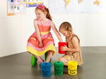 A set of four tubs which coloured tactile covers. Place small items in each tub and encourage children to reach inside to discover sensory rewards. A great exploration activity. Size: 140mm high