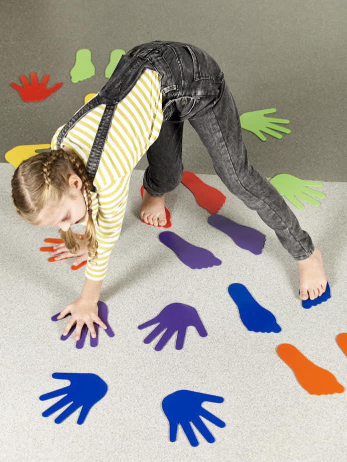 A set of six pairs of tactile rubber hands in six different colours. Stretch out to touch the hand pairs to encourage movement. Ages: 3+.