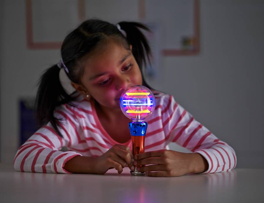 The LED spinner is a hit with all children especially enjoyed by those with autism. Press the on button to be rewarded with amazing optical effects and changing LED light patterns. A favourite hand held item with visual reward.