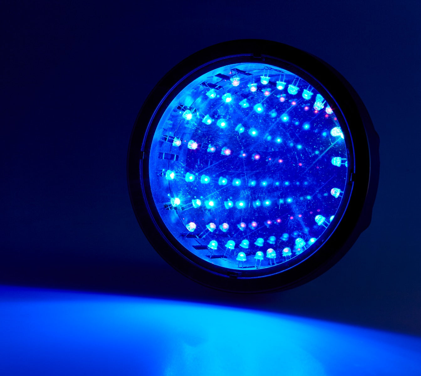 Look into the tunnel to see an array of coloured lights stretching back into infinity.
