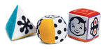 A set of three different shapes - Ball, Pyramid and Cube. each shape is designed to be a sight, sound and touch sensation for the baby. Encourages hand/eye concentration.