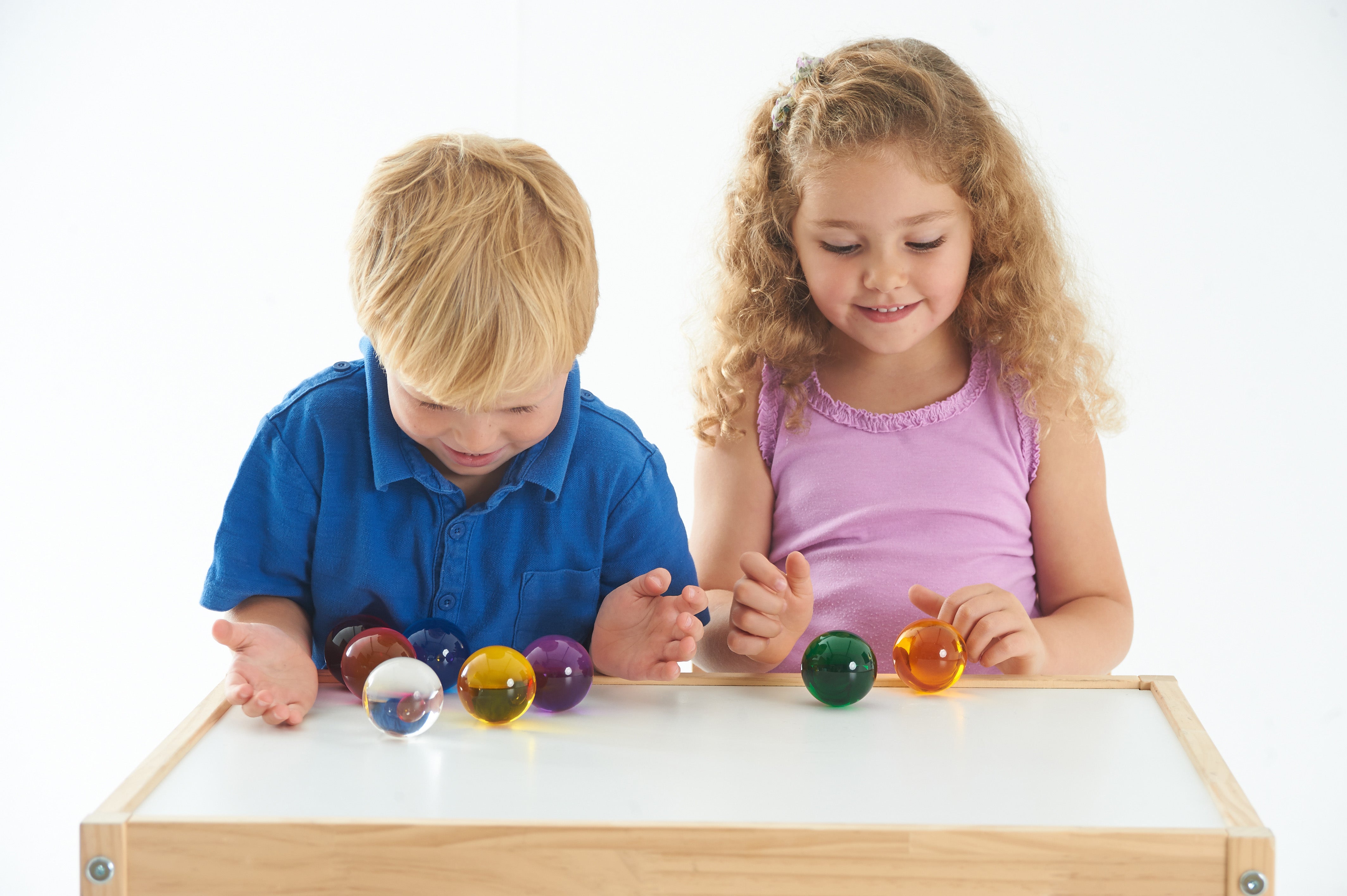 The spheres come in 8 different clear colours and are smooth and warm to touch. Hold them up and see the world in different colours.