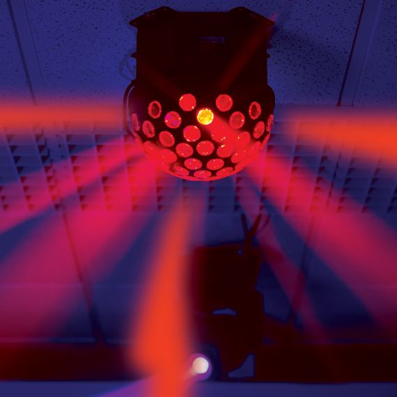 A dome-shaped light fitted with lenses to provide narrow shafts of prismatic illumination - a mirror ball effect taken to the next level, but with no spotlights required. The range of colours, speed and rotation can be controlled by the supplied 8-Way Wireless rechargable switch. Press anyone of the switches for a different effect - Switch 1 - Red: Slow Rotation Switch 2 - Yellow: Slow Rotation Switch 3 - Green: Slow Rotation Switch 4 - Blue: Slow Rotation Switch 5 - All Colours: Slow Rotation Switch 6 - All Colours: No Rotation Switch 7 - All Colours: Fast Rotation Switch 8 - All off The 8-way switch can also be used in conjunction with any of your favourite switches - simply plug into the 6.3mm jack socket (this requires a large jack plug). The Rainbow Light requires a mains power supply and can be used effectively on a desktop or fixed to the ceiling Size: H255mm x W270mm x D270mm.