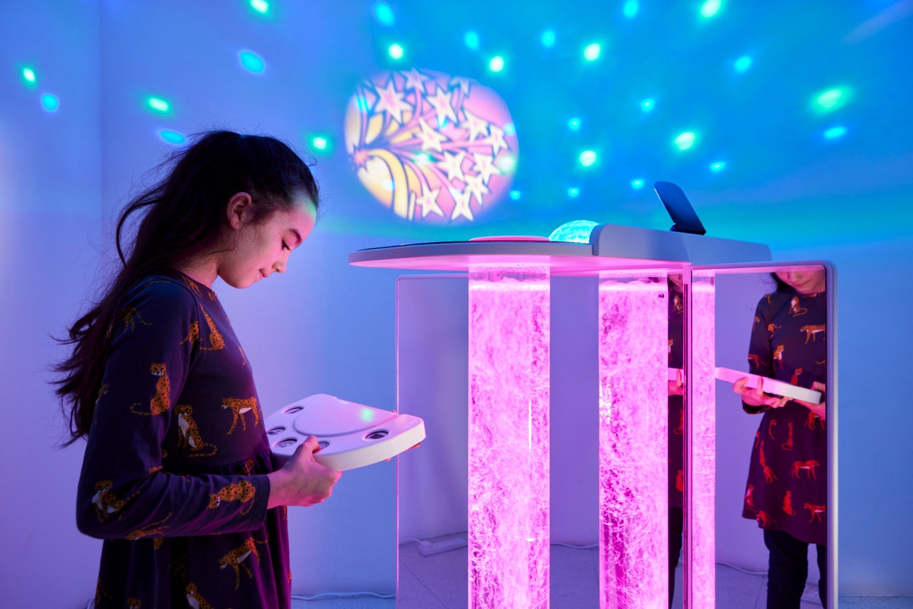 The trolley can be wheeled into treatment rooms to provide a distraction, used in a relaxation environment for many to enjoy or used on an individual basis.