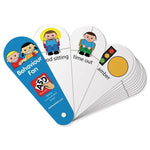 The fan contains 13 different symbols depicting different behaviours along with the matching vocabulary: