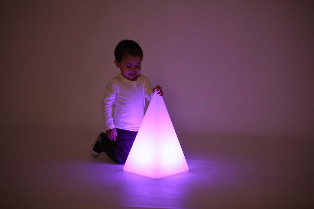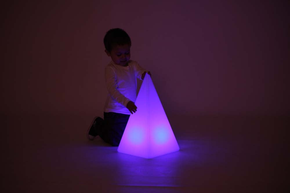 This ultra-strong illuminated hollow plastic pyramid provides an aesthetically pleasing mood-inducing light and can be placed in any setting or sensory den for ambient lighting. The sturdy but lightweight design is beautiful and practical, easy to move indoors or outside, simple to clean and ideal for individual or group focused activities.