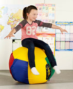 A heavy duty inflatable ball inside a colourful fabric cover. Available in two sizes.