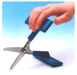 • Scissors are used either by depressing the handle with the scissor in a stable position, or by "scooting" it across the table