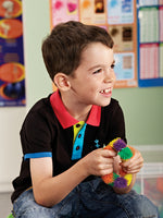 A colourful tangle of soft rubber hairs which can be twisted and turned. Great for sensory feedback. Size: 50mm when coiled