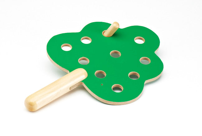 An easy-to-handle wooden tree with a wooden bee attached to a cord - weave the bee in and out of the tree branches. Assists with the development of fine motor skills.