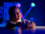 A pair of easy-to-hold Rainbow Batons with glitter water filled balls at each end.